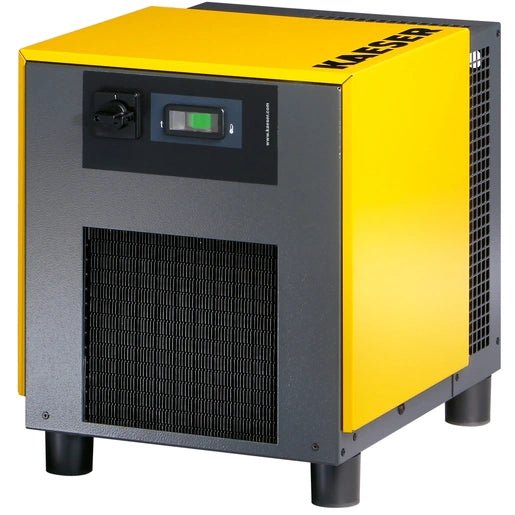 Der Kältekreislauf ist für Umgebungstemperaturen bis +50 °C ausgelegt. Zudem tragen der hochwertige Kältemittelkompressor und der große Kältemittelverflüssiger zur hohen Verfügbarkeit bei. Darüber hinaus sorgt die exakt definierte Kühlluftführung für zuverlässiges Abführen der Abwärme. Der integrierte elektronische Kondensatableiter ECO DRAIN entsorgt das anfallende Kondensat ohne Druckverluste.